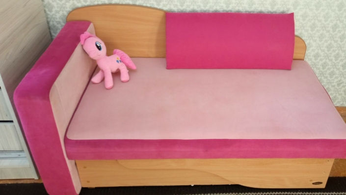 Canapea Confort 0,8m pe 2,0m in stare desfăcută, 0,8m pe 1,7m in stare strînsă, cu ladă de depozitare , în stare foarte buna.