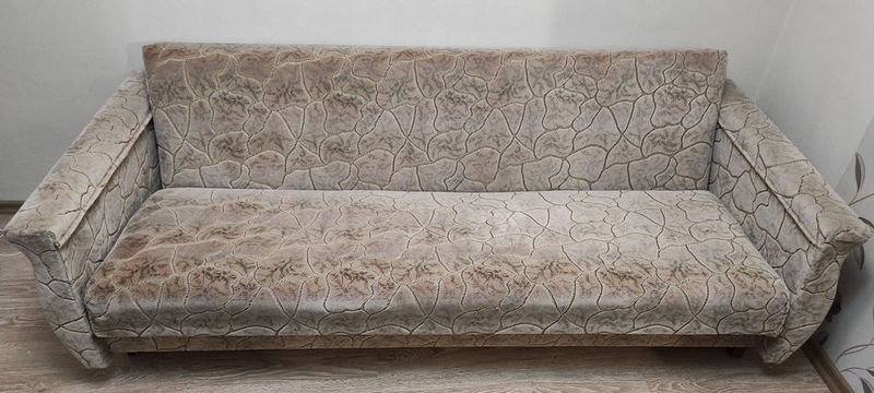Механизм в рабочем состоянии, раскладывается и собирается без проблем. Обивку меняли. Ширина с подлокотниками 215 см. Спальное место 190х110.