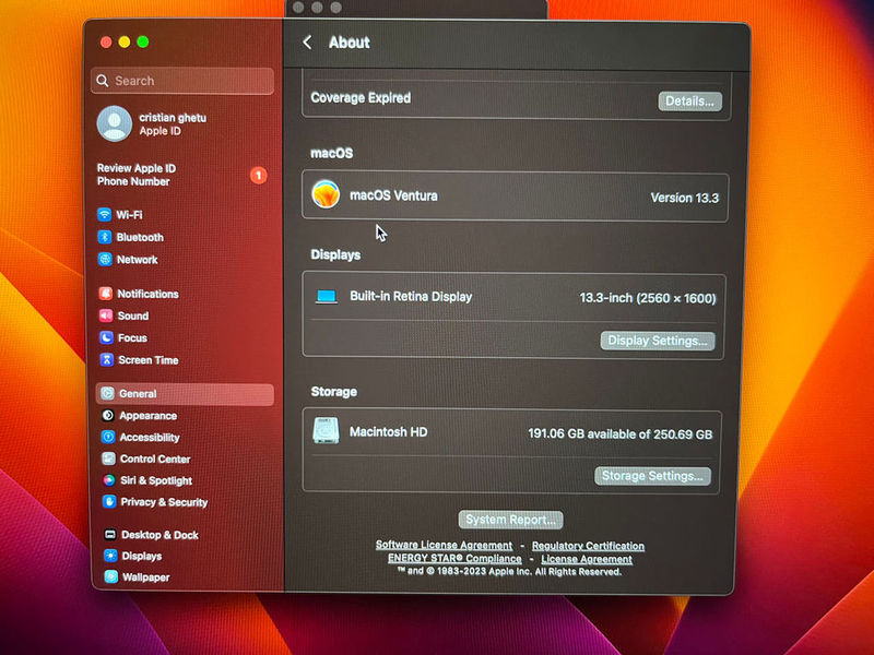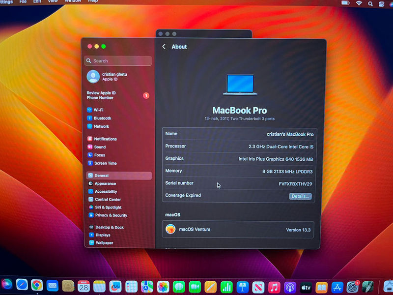 Cpu: Intel core i5 4x 2.30ghz, in turbo boost 3.60ghz