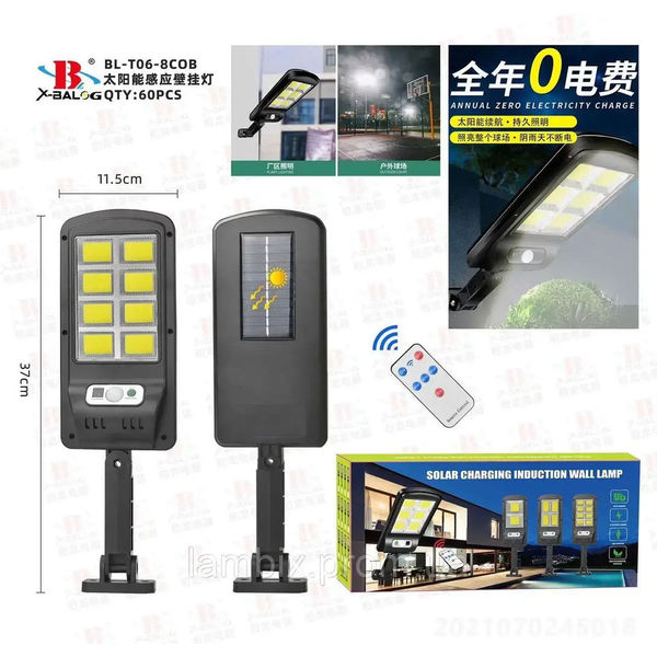 Уличный фонарь с датчиком движения и солнечной панелью BL T06-8COB, Фонарь на столб с пультом/