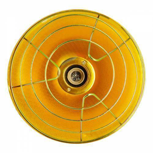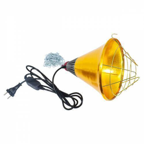 Плафон для ламп инфракрасного излучения, с электрическим кабелем и защитным каркасом. Гладкий алюминиевый корпус отражает инфракрасные лучи. Металлическая решётка обеспечивает максимальный уровень безопасности. Верхняя ребристая часть (радиатор) обеспечивает максимальную циркуляцию воздуха для дополнительного охлаждения конструкции. В комплект входит цепь для подвешивания. Стандартный патрон E27.