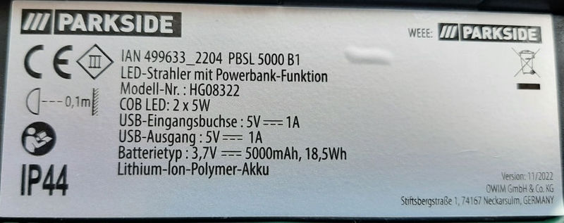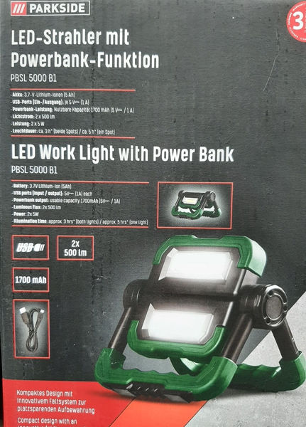 Светодиодный прожектор Parkside PBSL 5000 с функцией повербанка