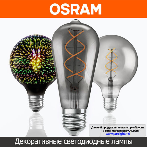 Декоративные светодиодные лампы OSRAM, лампы Эдисона в Кишиневе, ретро лампы, panlight