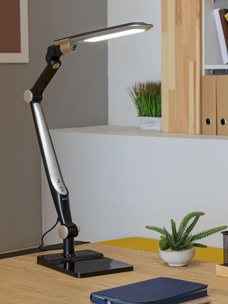 Настольная LED лампа Premium имеет регулировку яркости и температуры свечения, потребляемая мощность 10 Вт (эквивалент лампе накаливания 80 Вт).
