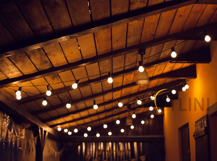 Декоративная подсветка состоит из провода с патронами. Для нее требуются LED лампы с цоколем Е27