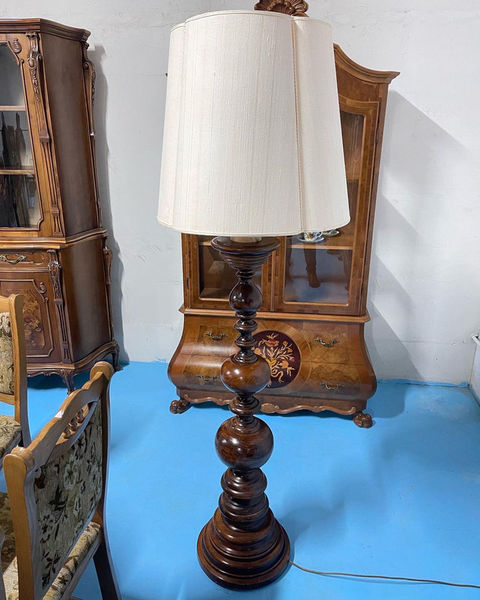 O superba lampa de podea pe picior din lemn masiv
