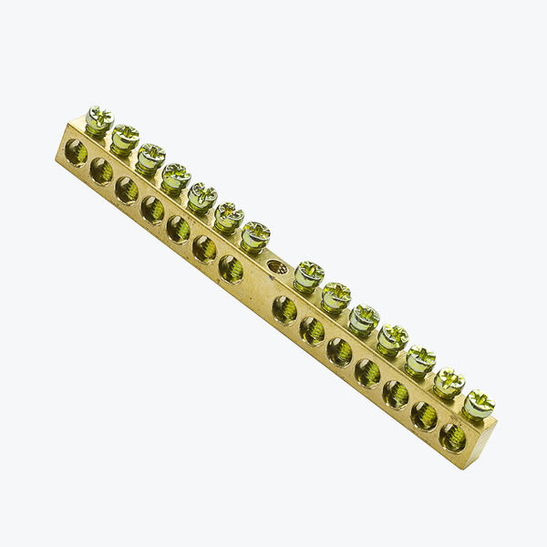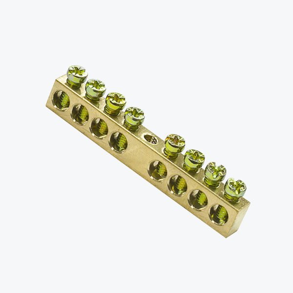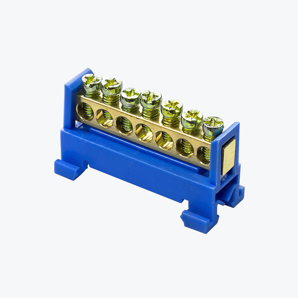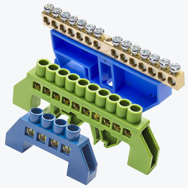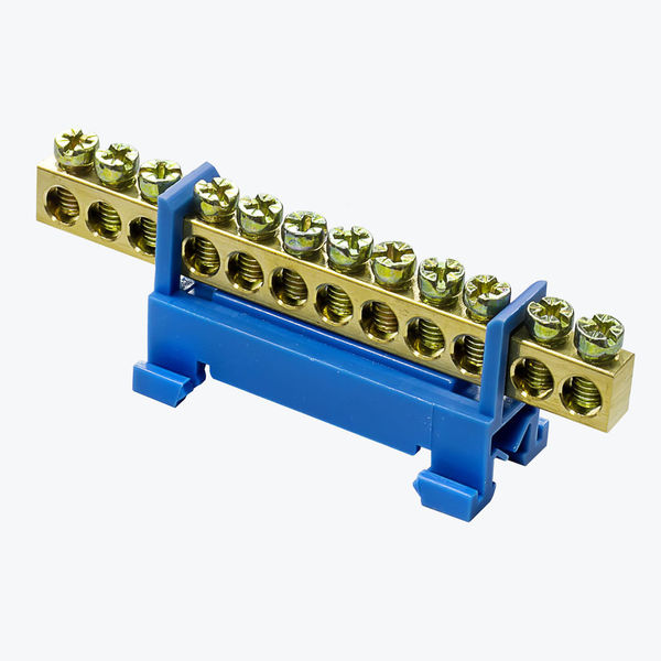 Шины нулевые с DIN изолятором предназначены для электрического и механического соединения нулевых, защитных и фазных проводников. Конструктивно выполнены из латунной шины, установленной на пластиковый изолятор или в изолятор, изготовленный из самозатухающего пластика. Крепление шины предусмотрено по центру через изолятор нулевой шины на 35 мм монтажную DIN-рейку. При подключении к шинам медных многожильных проводов рекомендуется оконцевание их наконечниками и гильзами. Выполнены из латуни.