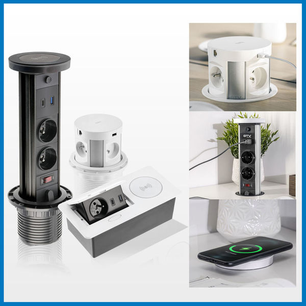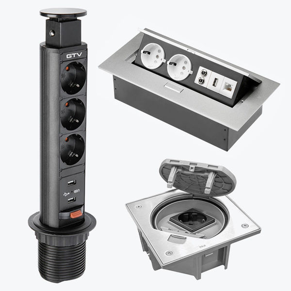 Prize incorporabile in blat GTV, priza mobila bucatarie, priza incastrabila in mobila wymienne, LED