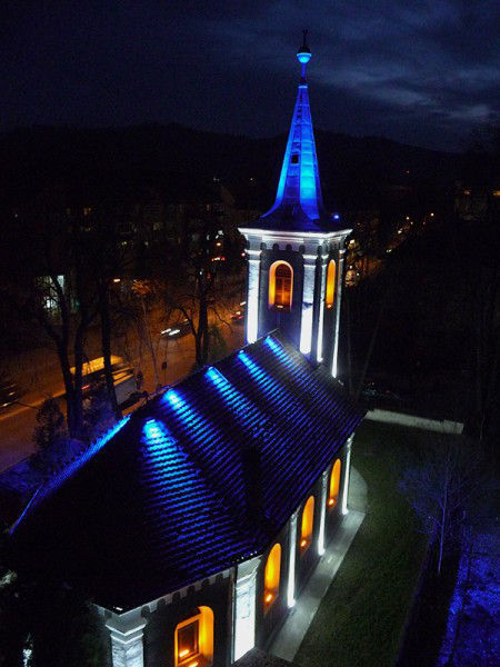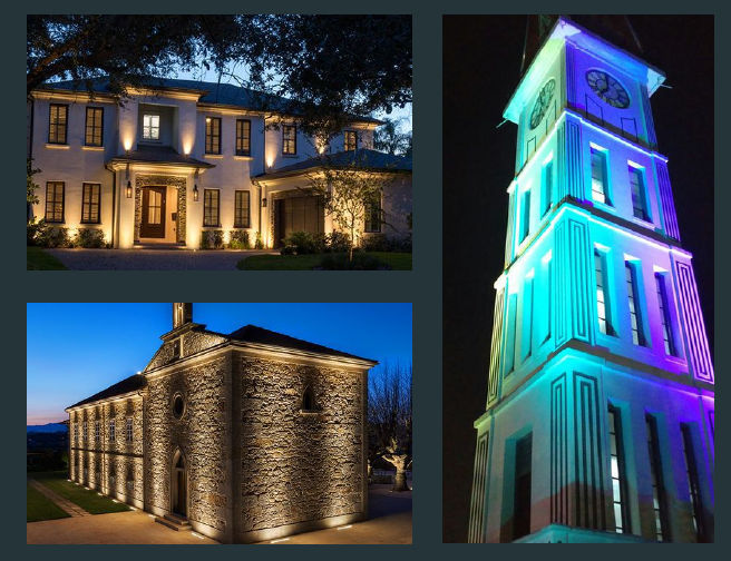Освещение фасада, контурная подсветка зданий, архитектурное освещение.