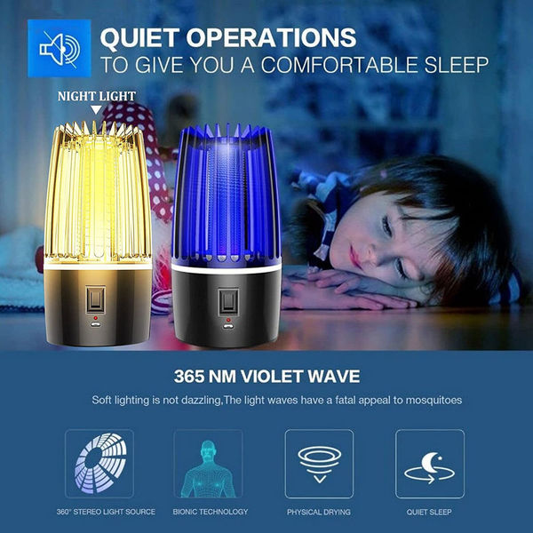 Lampă ucigaș țânțari, insecte UV 360, lumină electrică 2 în 1 pentru uciderea țânțarilor cu USB reîncărcabilă, capcană portabilă împotriva dăunătorilor pentru interior și exterior