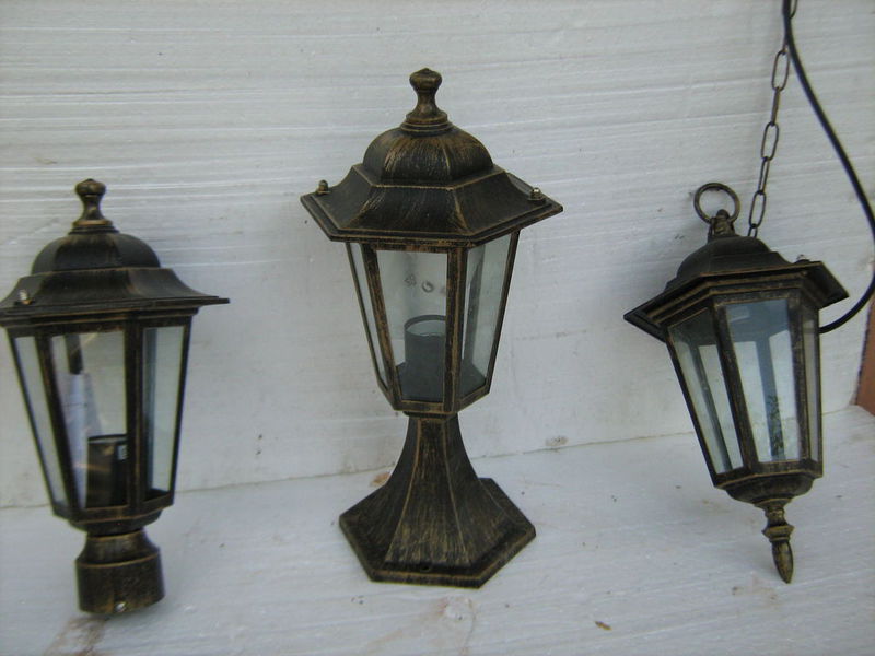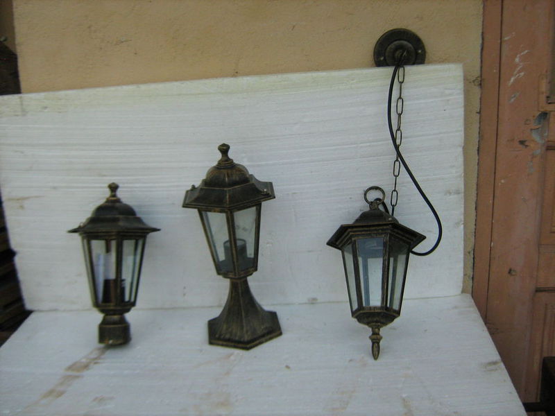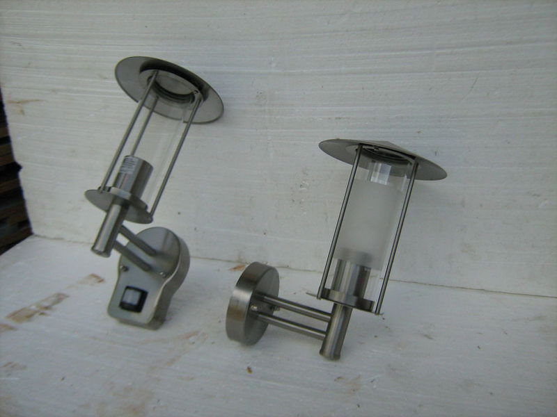 Из матовой нержавейки, уличные, настенные, три штуки по 250 лей.