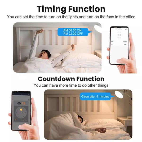 Controlați fără fir luminile sau dispozitivele cu vocea sau automatizarea cu smartphone-ul și Alexa sau Asistentul Google.