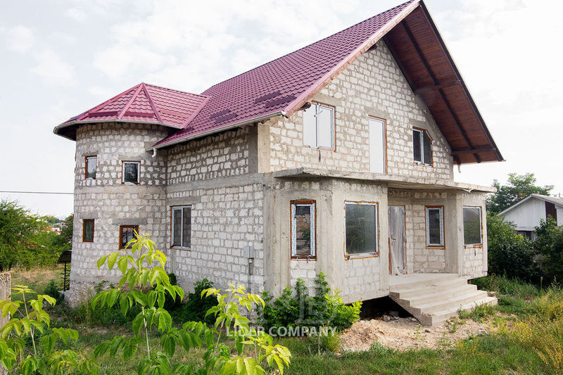 Casa dispune de geamuri termopane, acoperiș izolat și ușă blindată