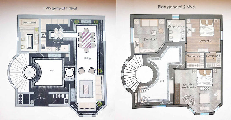 -Etajul tehnic: hol spatios, cazangerie, debara, beci, garaj.